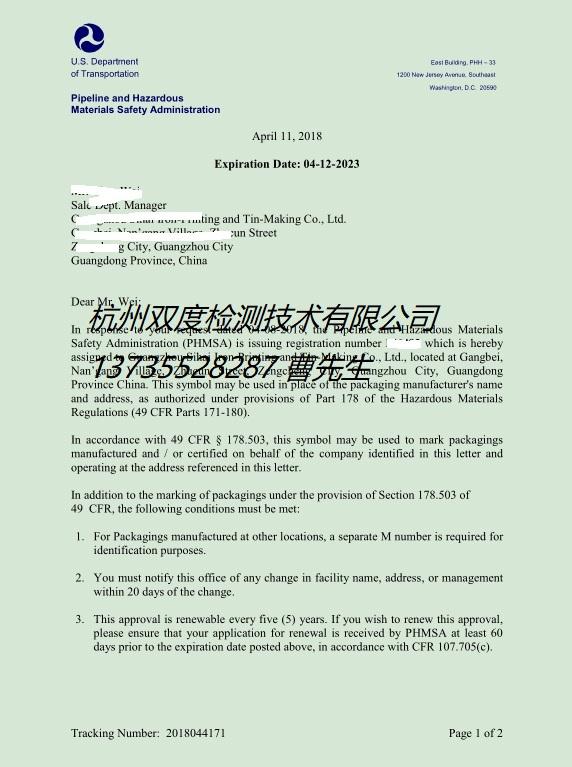 经过数月的申请工作,杭州双度检测技术有限公司高效地为客户成功申请了气雾罐美国DOT认证。